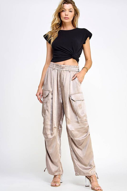 Silky Banded Waist Wide Leg Cargo Pants - MushroomRegular price $52.00 USDRegular priceUnit price per-