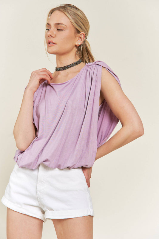 Sleeveless Shirring Crop Knit Top - Lilac FINAL SALE!