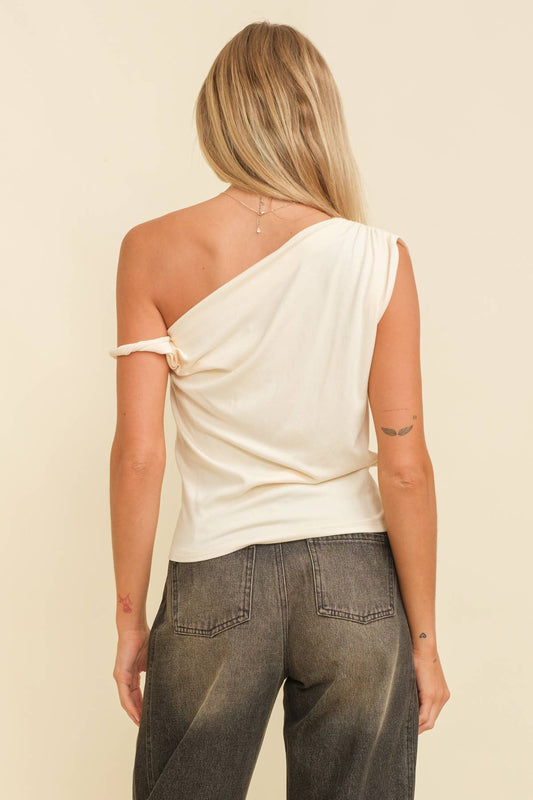 OneShoulder Twist Asymmetrical Top - Oatmeal/Mid PeachRegular price $32.00 USDRegular priceUnit price per-