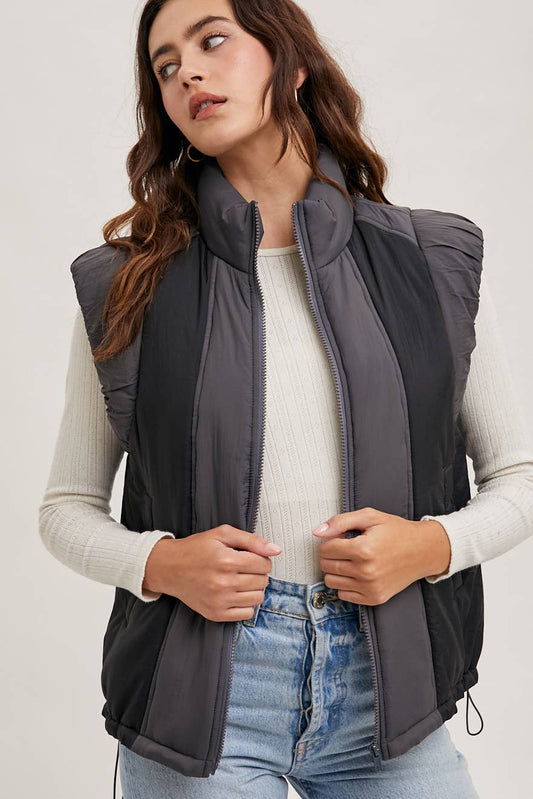 Contrast Puffer Zipper Down Vest - Black/CharcoalRegular price $58.00 USDRegular priceUnit price per-