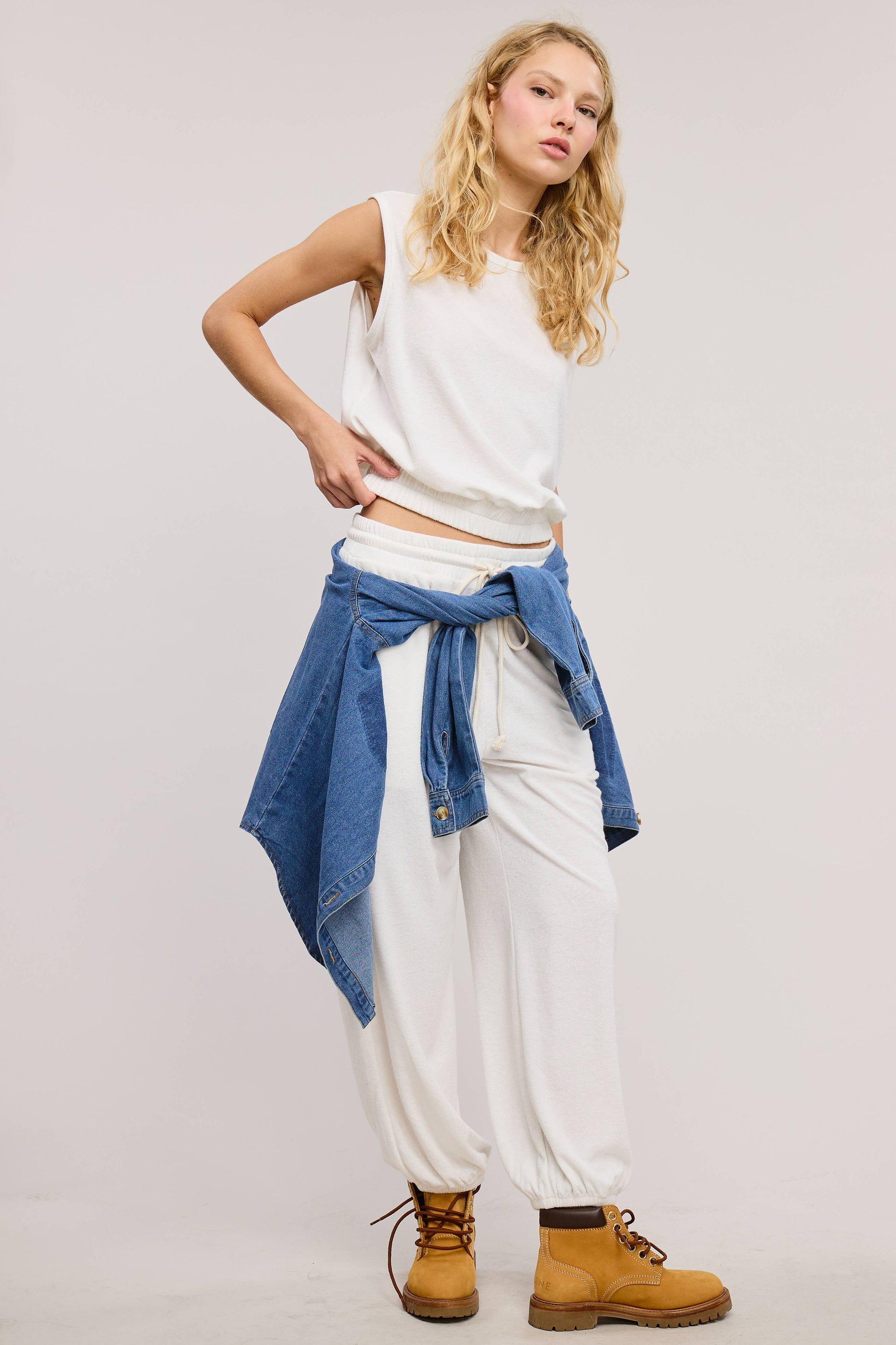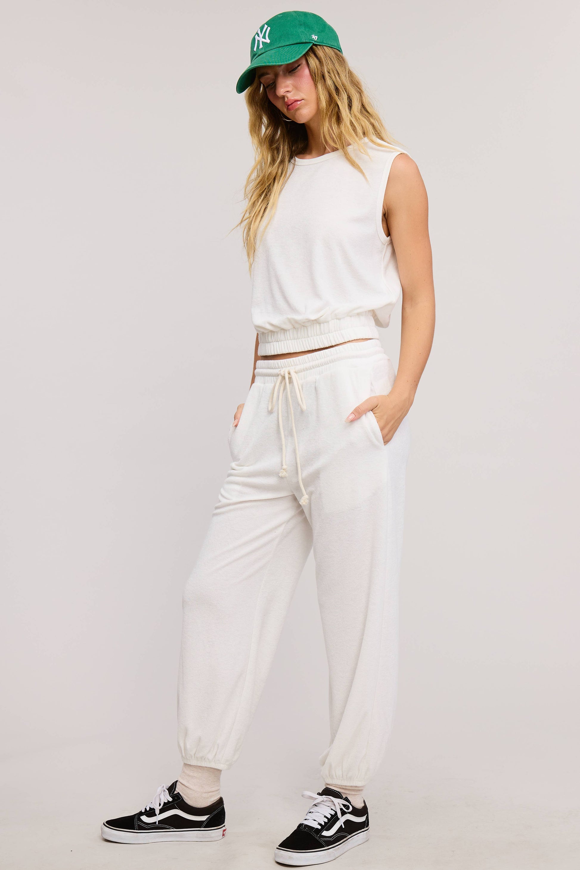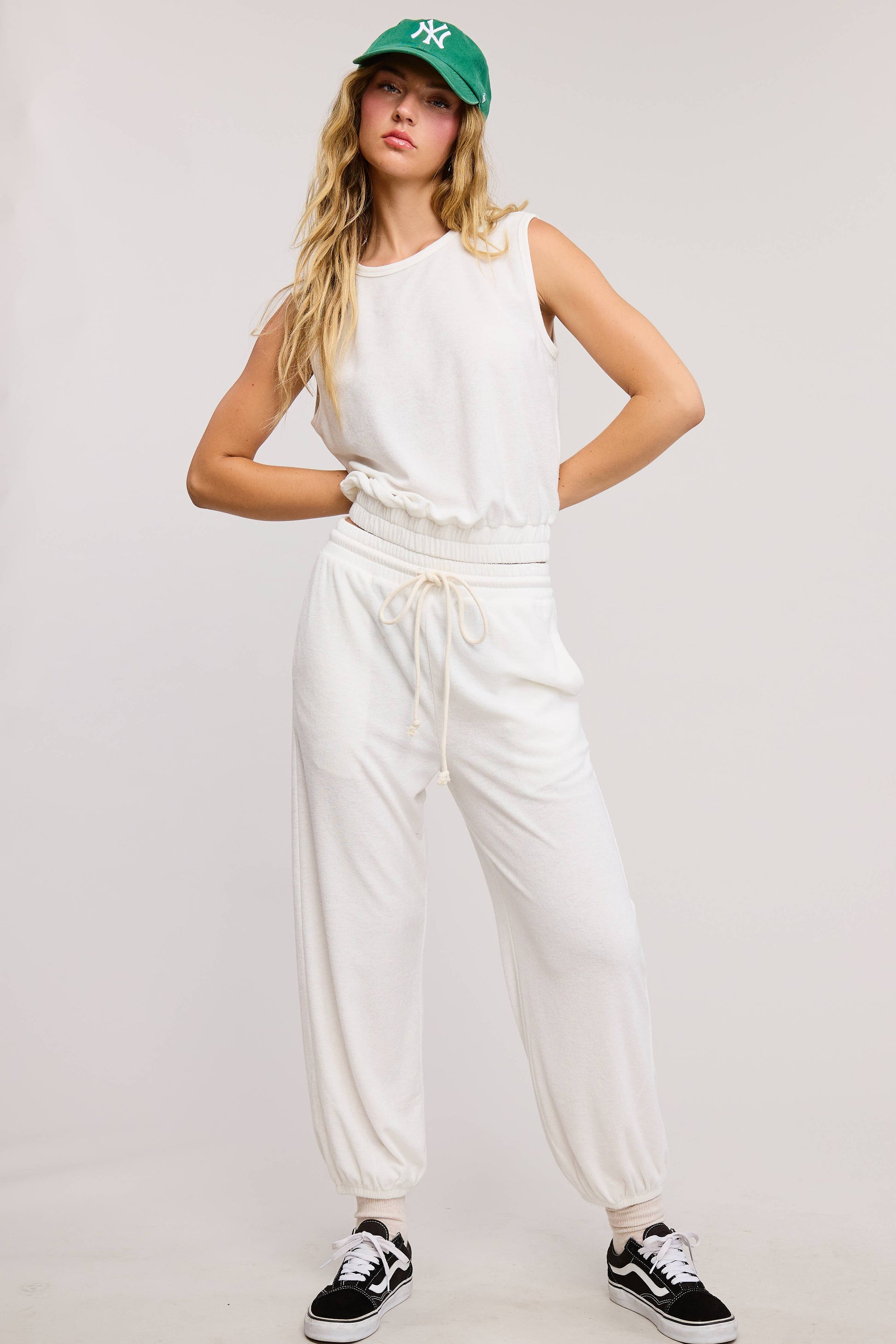 Terry Knit Tank & Jogger Set - Soft White/Cream