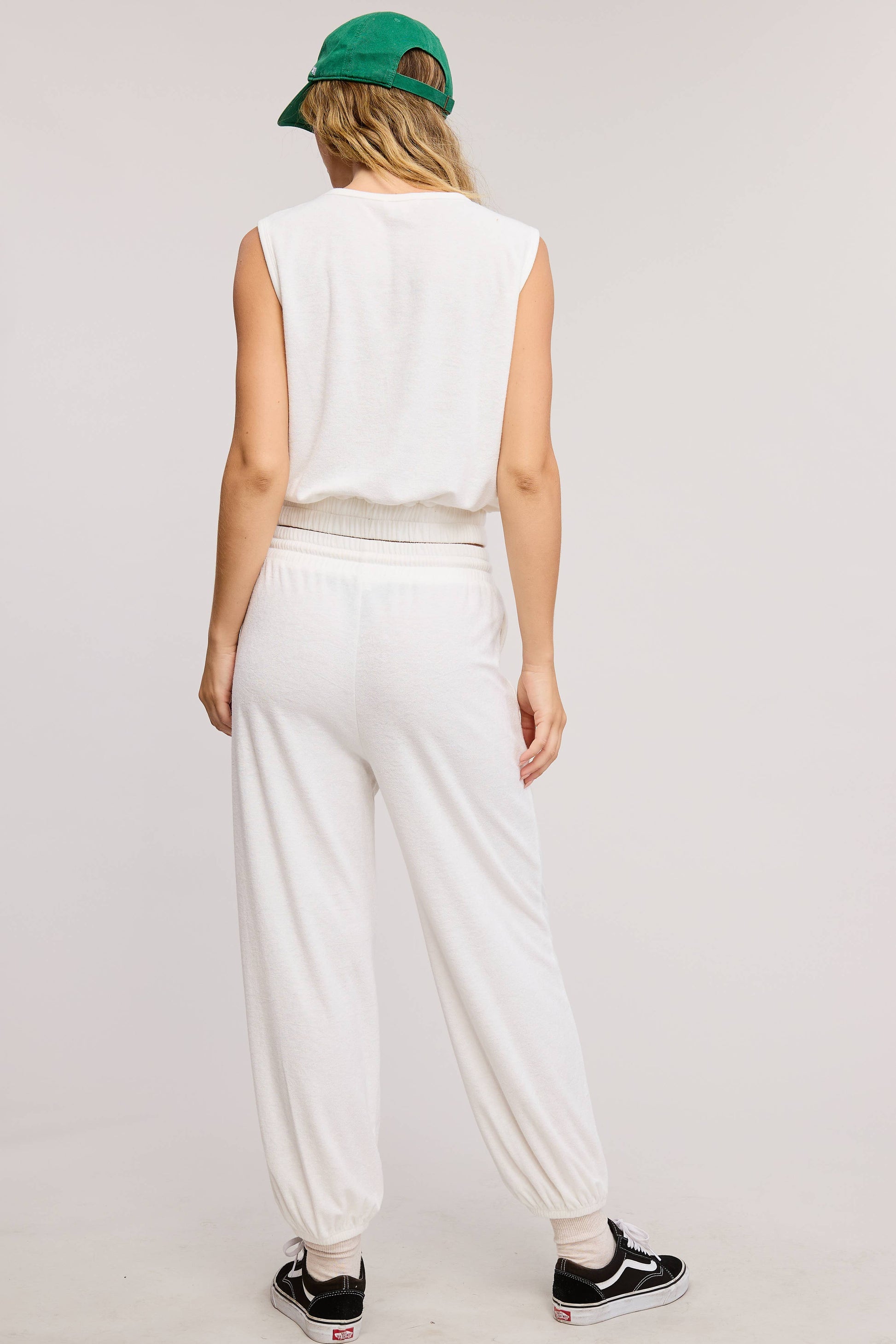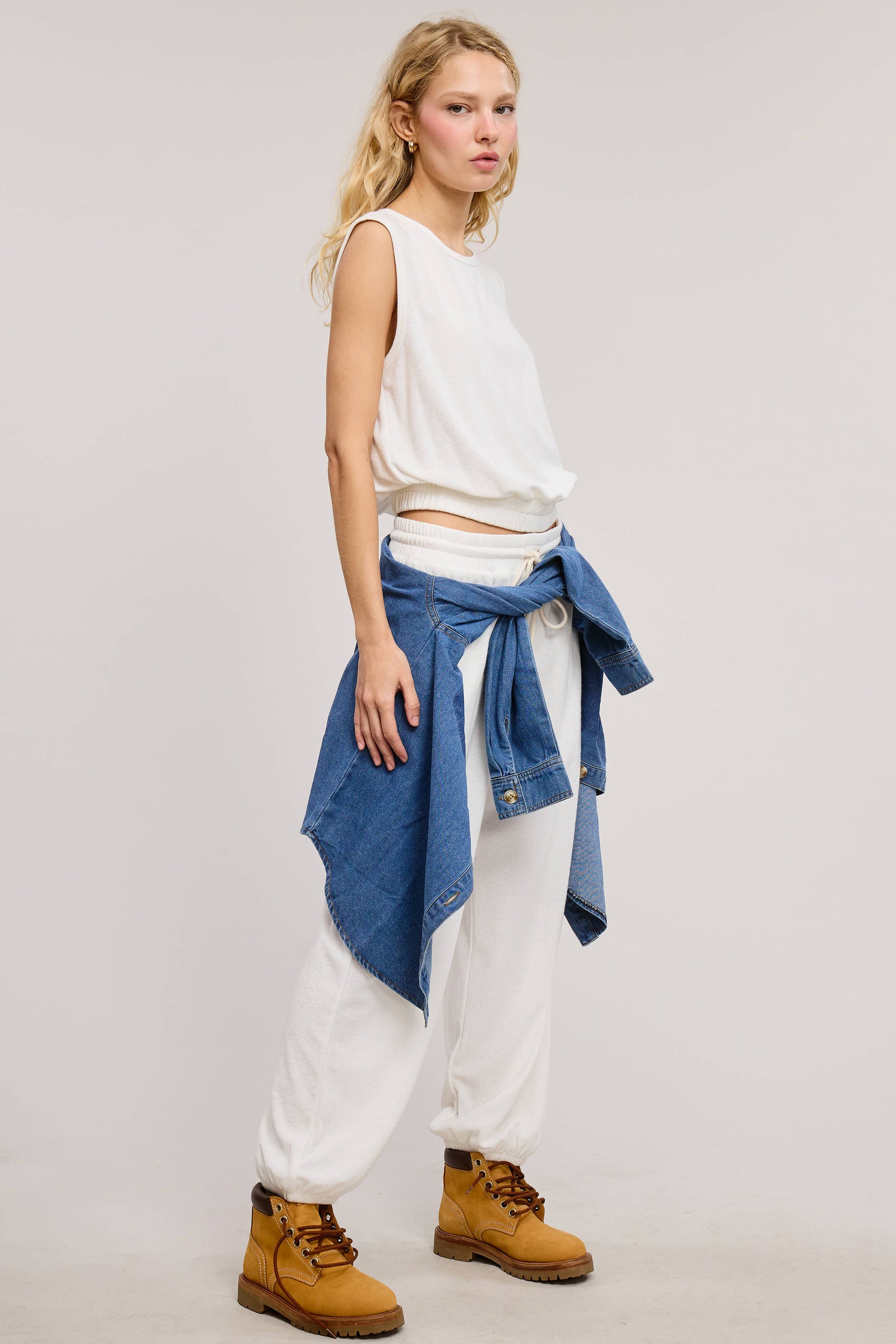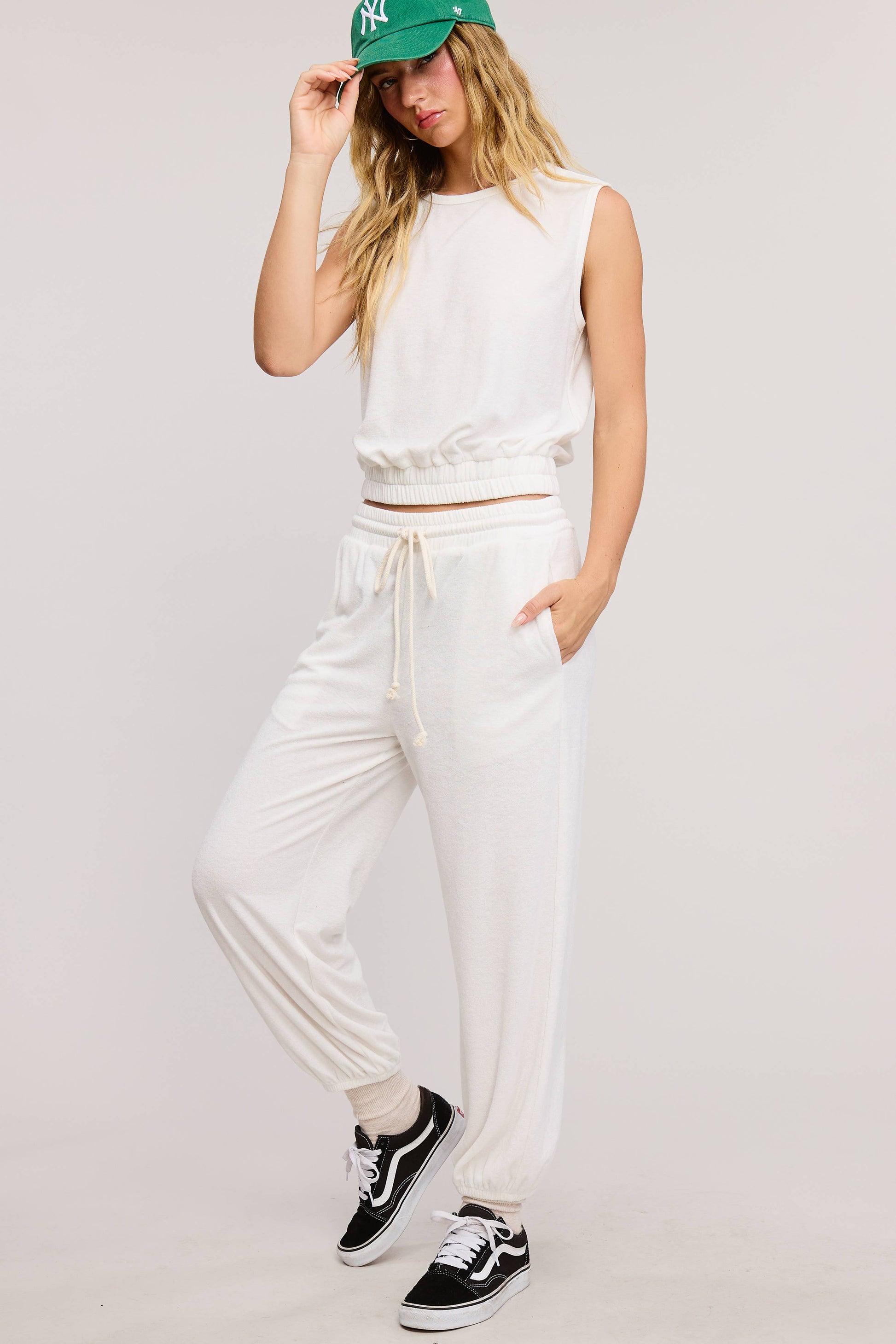 Terry Knit Tank & Jogger Set - Soft White/Cream