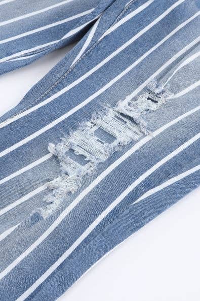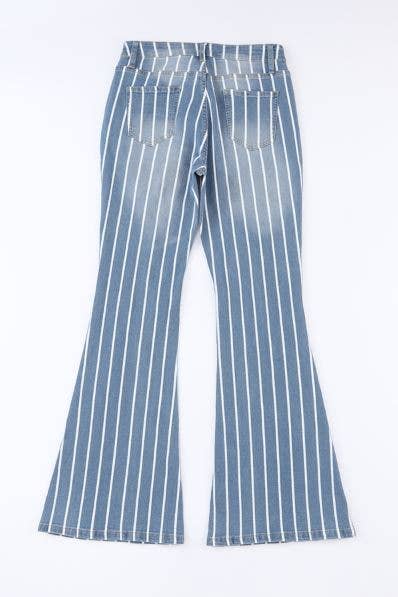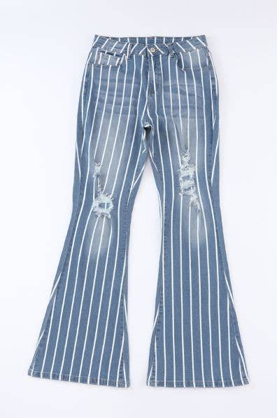 Vertical Striped Ripped Flare Jeans - Smokey Wash FINAL SALE!